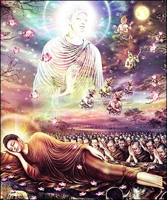 ๑๘. สัตว์ทั้งหลายทั้งปวง จักต้องทอดทิ้งร่างกายไว้ในโลก แต่พระตถาคตผู้เป็นศาสดาเช่นนั้น หาบุคคลจะเปรียบเทียบมิได้ในโลก เป็นพระสัมพุทธเจ้า ทรงมีพระกำลังยังเสด็จปรินิพพาน (๑๕/๒๐๘ มหาปรินิพพานสูตร) |